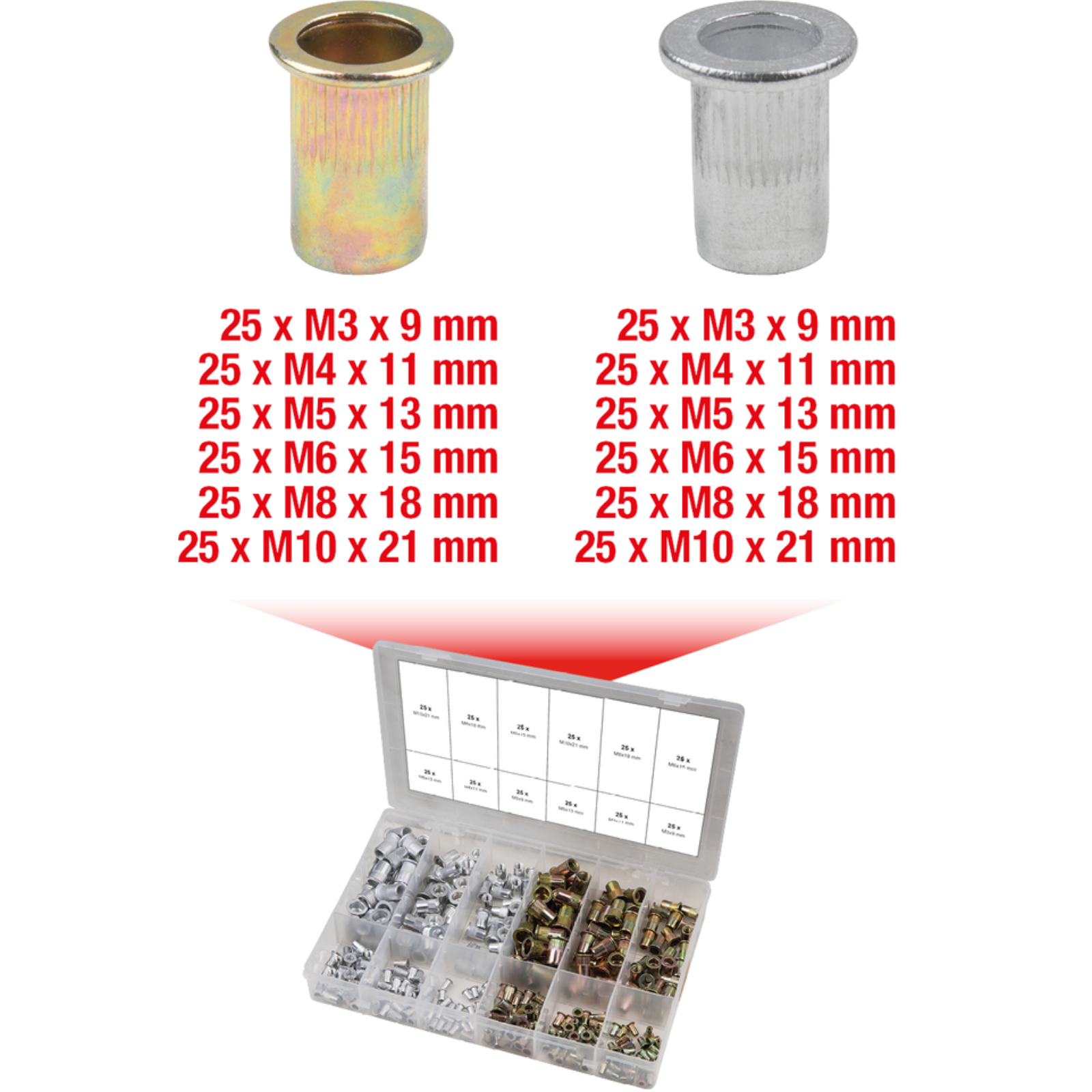 Assortimento di rivetti filettati 300 pezzi