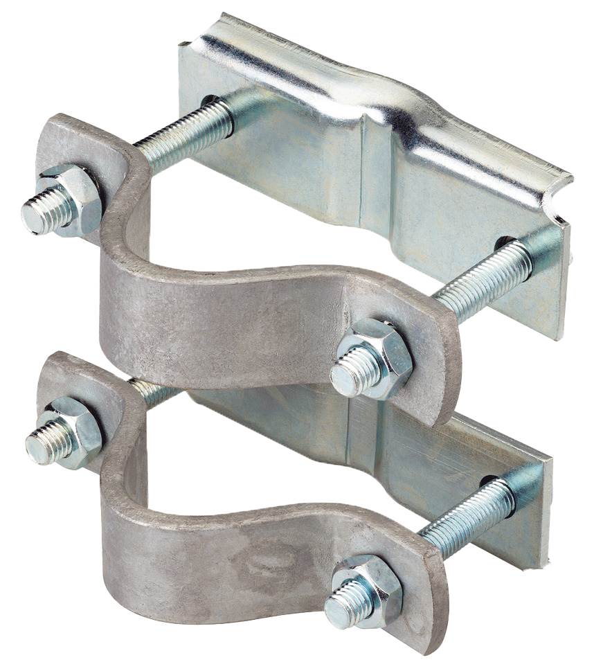 Per tubi da 1 1/4 a 2". Adatto per abbeveratoi Lister SB2, SB22, SB112, SB113. Set composto da 2 viti ciascuna con dadi e rondelle, staffe e contropiastre. (Interasse fori 100 mm) "