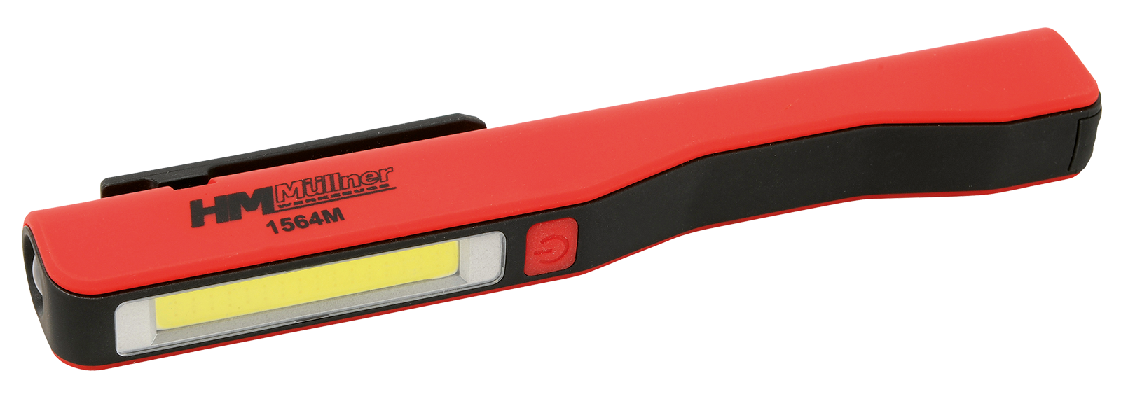 Pratica lampada di ispezione a LED con COB da 3 W e un potente LED. Dispone di due funzioni di illuminazione e di una clip regolabile in 3 direzioni con magnete. Include 3 batterie AAA, lunghezza totale 185 mm.