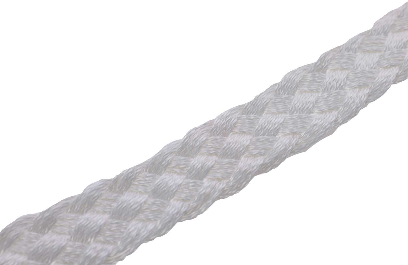 Cordino in nylon bianco, intrecciato piatto con due occhielli. Lunghezza 125 cm.