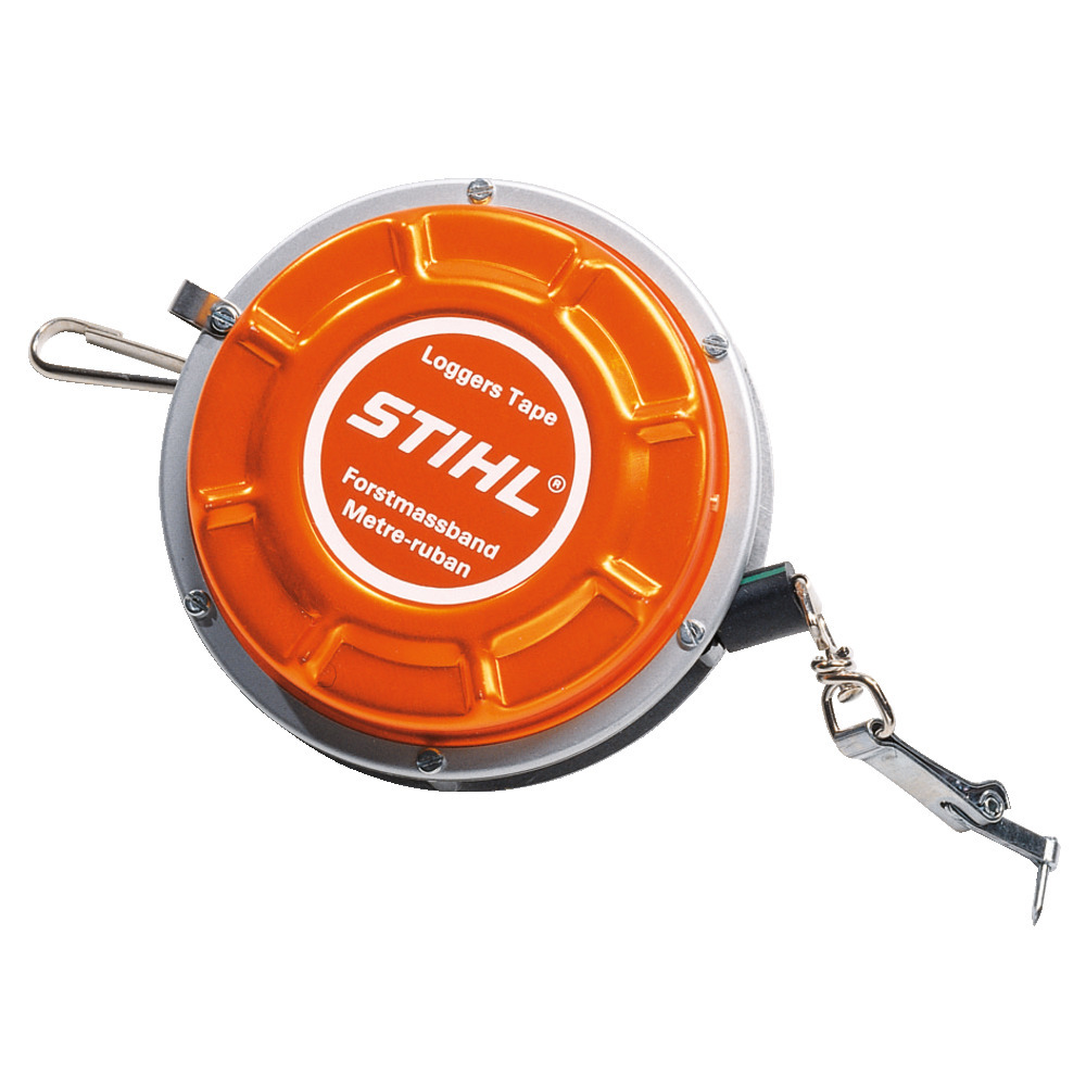Flessometro forestale autoavvolgente in robusto alloggiamento metallico. Lungo 15 m. Certificato dall'Ente di Esame Tecnico Forestale (KWF test acorn).