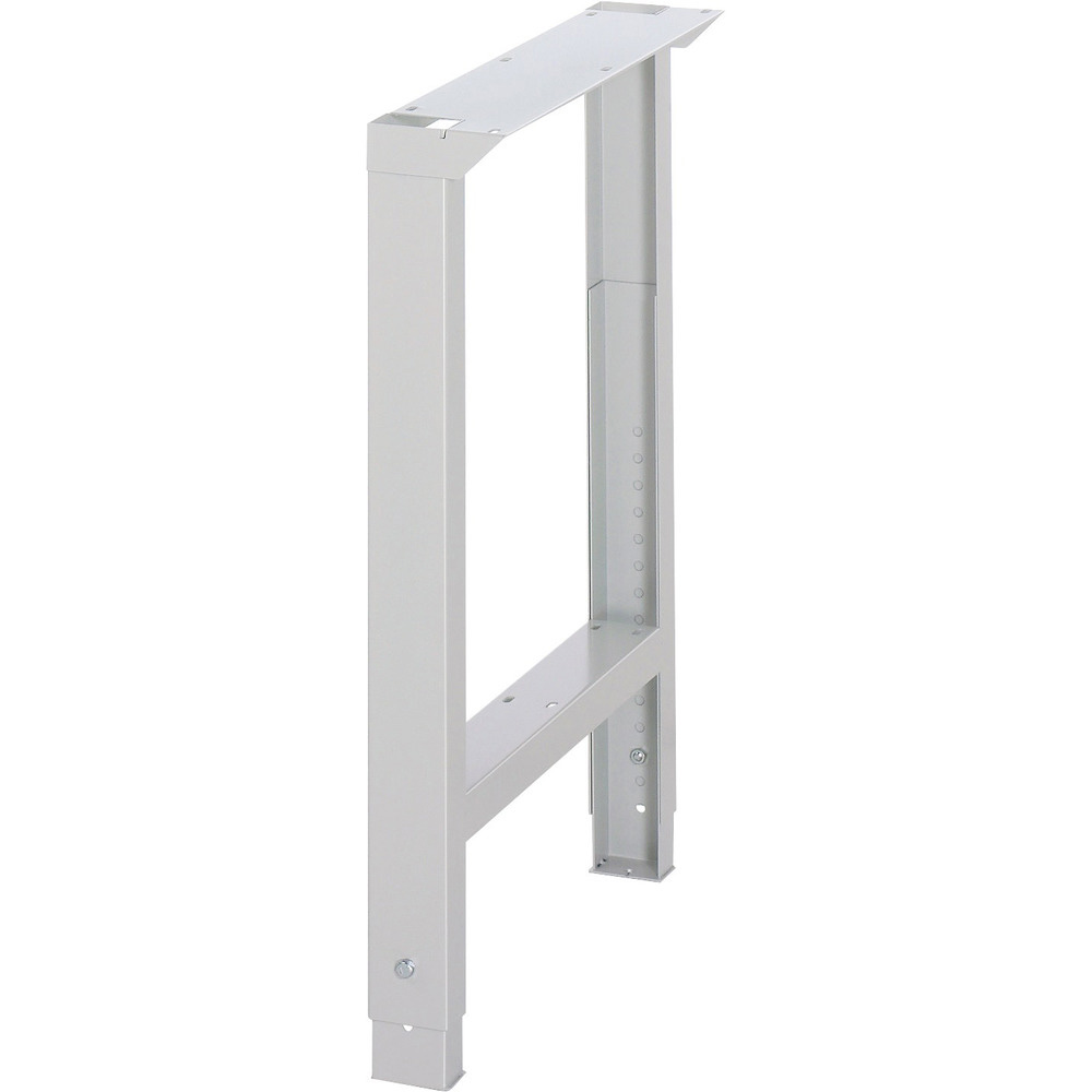 Profilo a C saldato 70 x 50 mm, ampia superficie di appoggio superiore 120 mm, verniciato a polvere grigio chiaro, RAL 7035, altezza regolabile da 750 a 1100 mm, piastra di base predisposta per l'ancoraggio a pavimento.