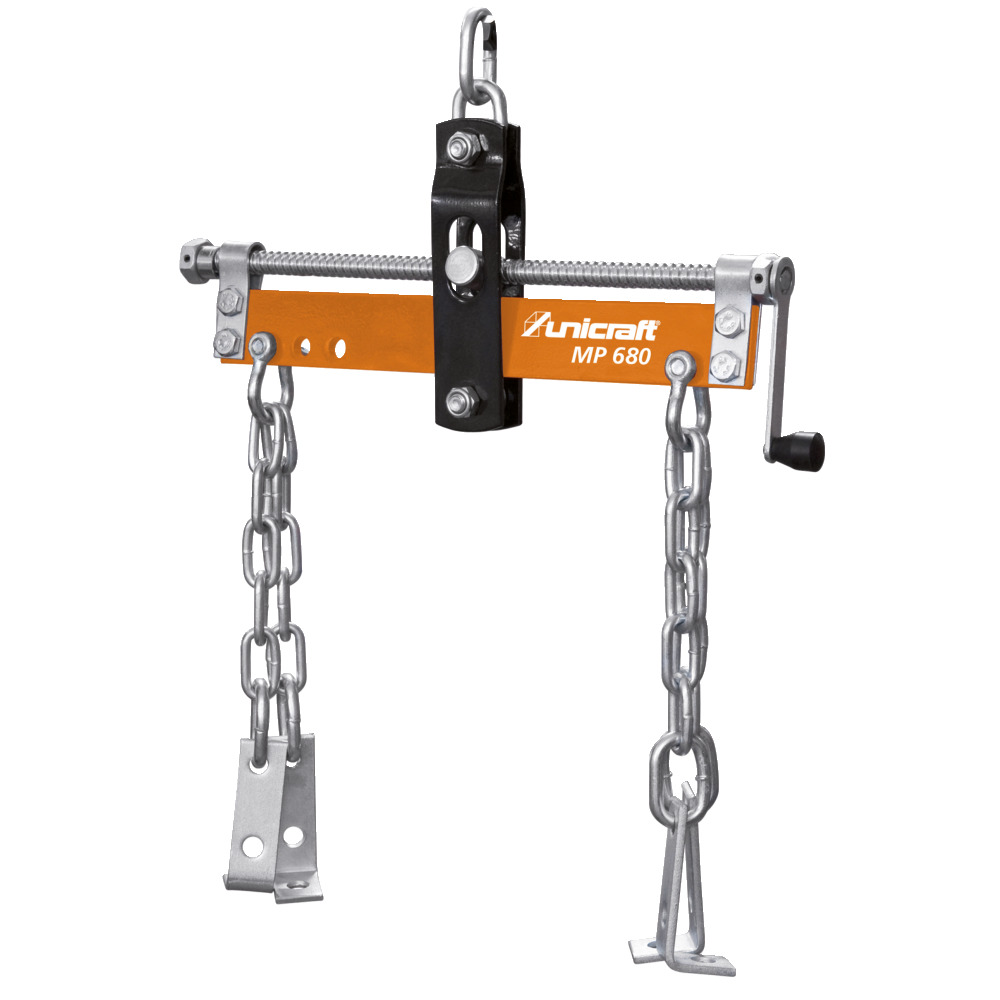 Per una facile installazione e rimozione dei motori. Adatto a qualsiasi gru da officina o simili. Capacità di carico: 680 kg, peso a vuoto: 5,5 kg, dimensioni (L x P x A): 445 x 65 x 190 mm.
