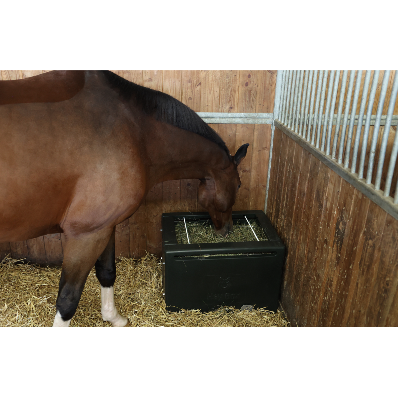 Il contenitore per il fieno in HDPE per un'alimentazione adeguata dei cavalli.