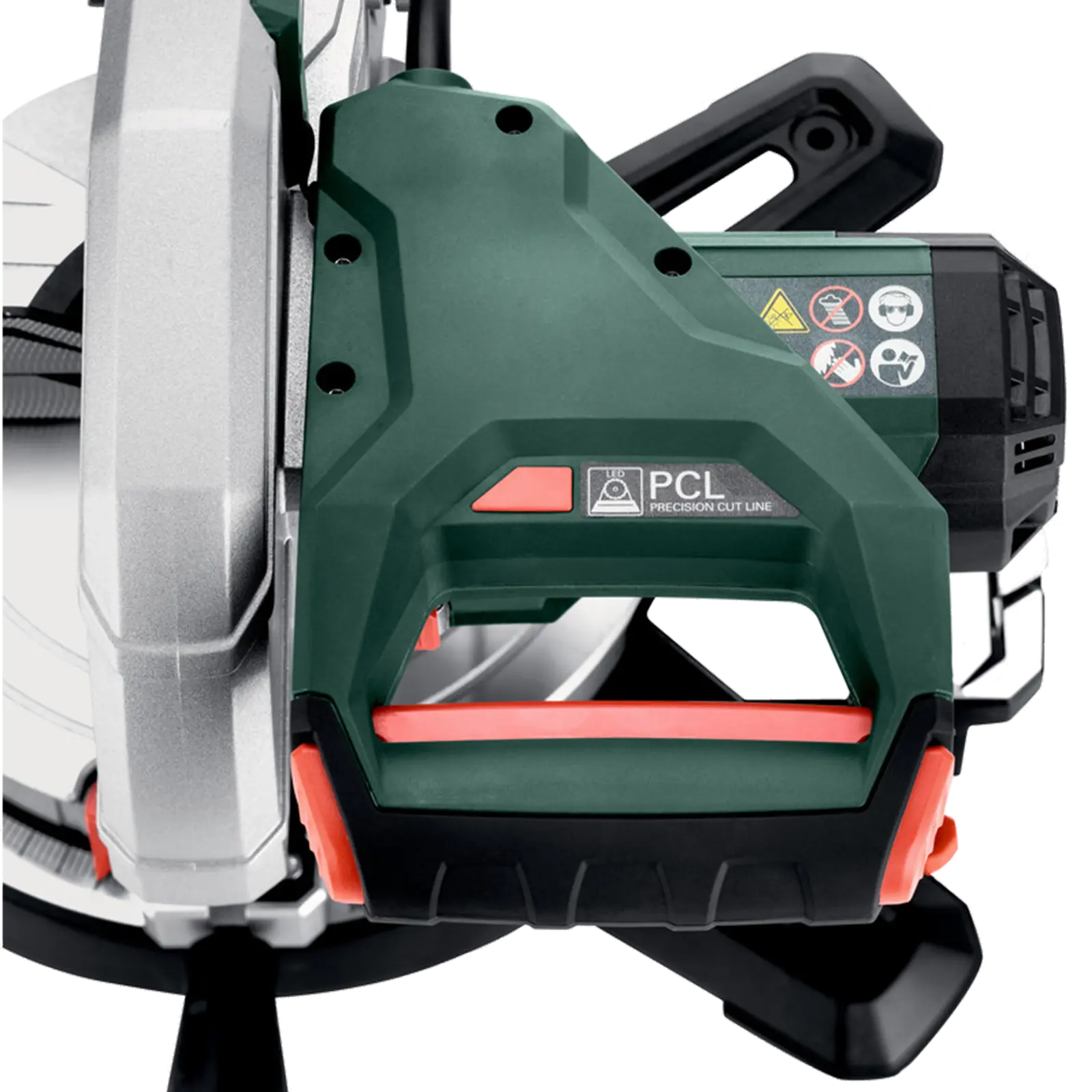 Troncatrice compatta con potente motore da 1.100 watt. Area di taglio a 90°: 120 x 60 mm o 80 x 45 cm a 45°. Piano girevole ruotabile di 47°, lama inclinabile di 47° a sinistra o 2° a destra per tagli obliqui precisi. Lama in metallo duro da 216 x 3 x 40 denti. Le dimensioni compatte di circa 47 x 46 x 48 cm e un peso di soli 8,7 kg la rendono ideale per l'uso mobile.