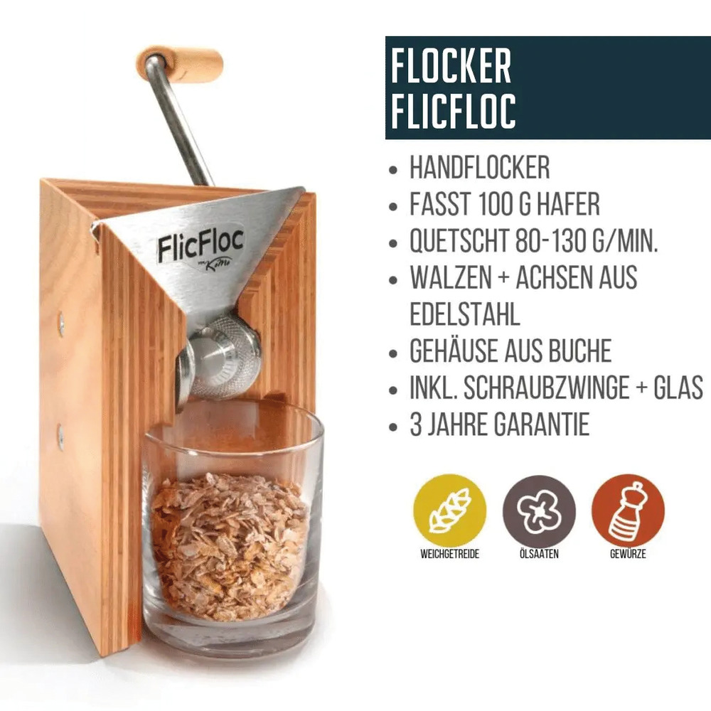 Benutze die Flockenquetsche Flicfloc jeden Tag. Schön verarbeitetes Küchengerät - einfach zu bedienen - sehr empfehlenswert.