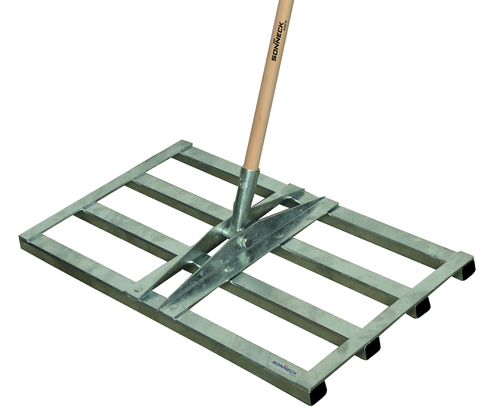 Pratico attrezzo multiuso per livellare, lisciare o levigare il prato. Con questo attrezzo, puoi livellare il prato in modo rapido e senza sforzo, distribuire la sabbia in modo uniforme e livellare le aree irregolari, per un prato perfetto. Dimensioni: 75x45x2 cm, con manico 185 cm, robusta struttura zincata. Prodotto in Austria.