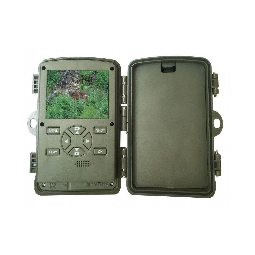 Video con registrazione audio di 3840x2160/10 fps, 2688x1520/20fps, 1920x1080/30fps, 1280x720/60fps, 720x480/30fps, 640x480/30fps, 320x240/30fps impostabili. Data, ora, fase lunare, su ogni immagine. Possibilità di impostazione timer. 3 rilevatori di movimento PIR (intensità regolabile), inclusi 2 pre-PIR con angolo di registrazione di 120° per variazioni trasversali, disattivabili, PIR principale con angolo di registrazione di 60°, zoom di riproduzione da 1 a 14x, funzione slide show nella selezione delle immagini, protezione tramite password, funzionamento in base al tempo di standby tramite 4-8 batterie alcaline Mignon (AA, non incluse), alloggiamento resistente alle intemperie IP54, cavo USB per il collegamento al PC per il trasferimento delle immagini, cinghia per il fissaggio ad albero e staffa per montaggio a parete. Dimensioni estremamente ridotte ca. LxPxA = 130 x 90 x 75 mm inclusa scatola batteria, menu di navigazione multilingue D, GB, DK, FI, S, F, E, I, P, NL