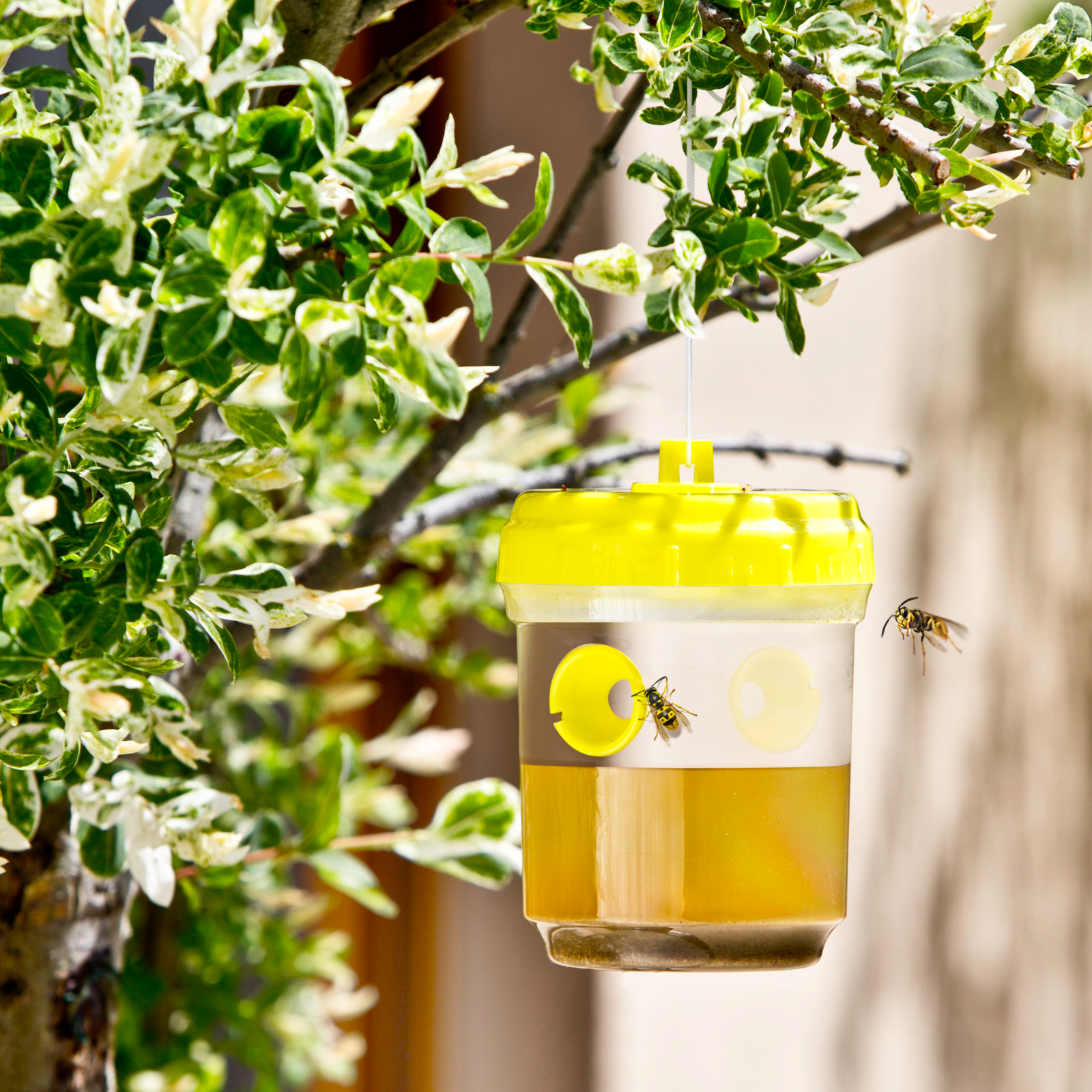 Le vespe sono magicamente attratte dal profumo dolce dei dessert o della frutta, così come dall'aroma speziato della carne. È un bene che la trappola per vespe, con il suo attrattivo, emani un aroma ancora più intenso, tenendo la piaga delle vespe lontana dalle vostre delizie culinarie. Che sia installata o appesa, questa trappola vi servirà fedelmente per diverse estati. Un effetto collaterale positivo: anche mosche e zanzare trovano la strada per la trappola.